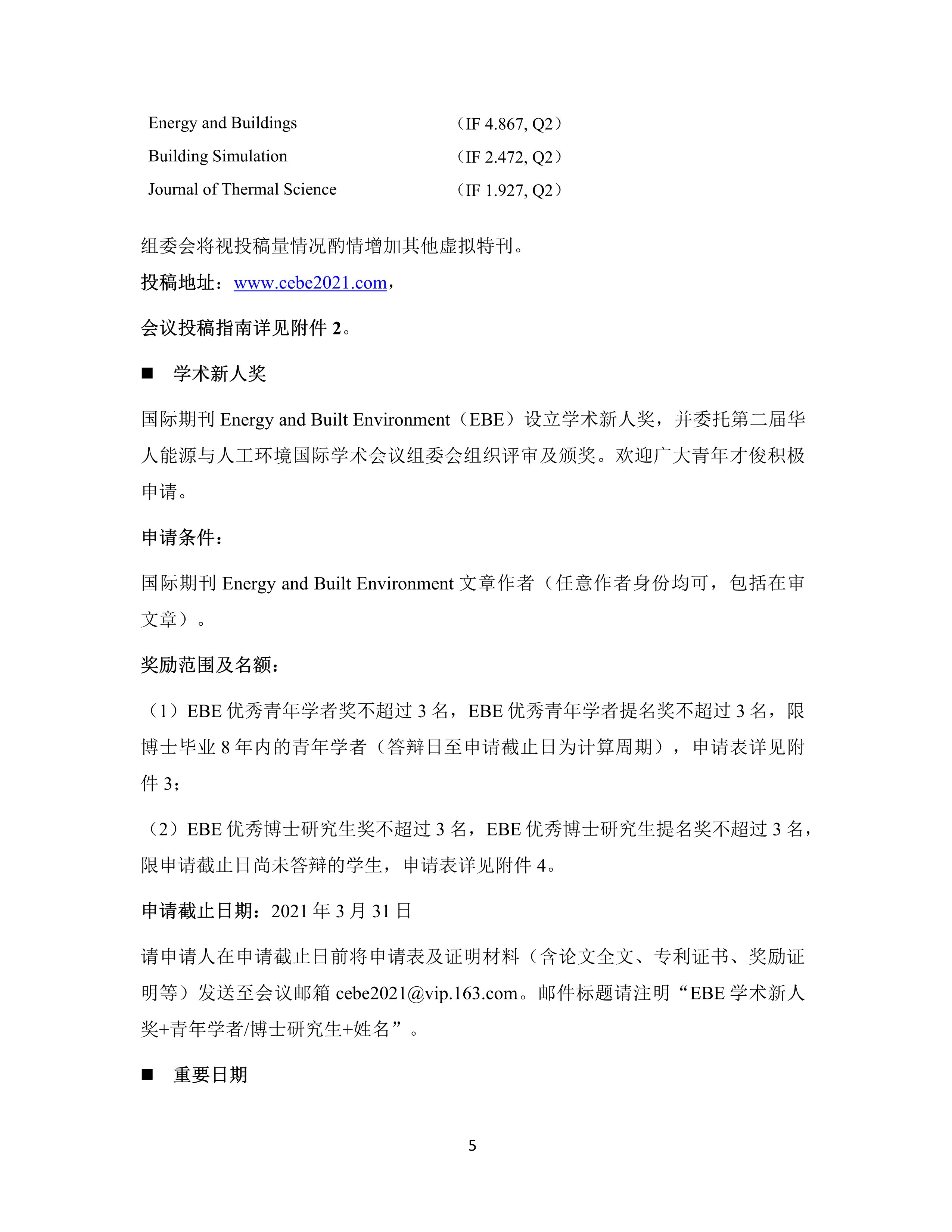 第二屆華人能源與人工環(huán)境國際學(xué)術(shù)會(huì)議征稿啟事及獎(jiǎng)項(xiàng)申請(qǐng)通知
