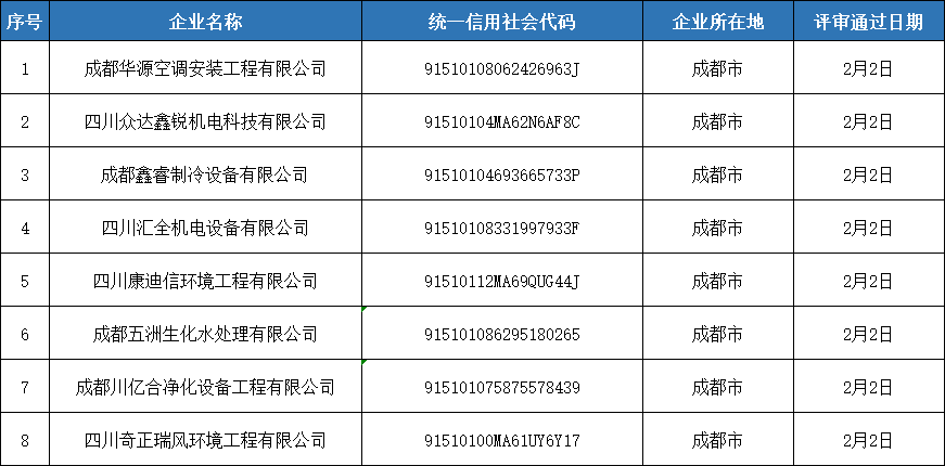 我會(huì)對(duì)第六批申請(qǐng)四川省空調(diào)通風(fēng)系統(tǒng)專業(yè)清洗企業(yè)資質(zhì)證書的申報(bào)材料組織了專家審查,現(xiàn)將符合專家審查意見的企業(yè)名單在四川省制冷學(xué)會(huì)門戶網(wǎng)站(http://www.ngwpxil.cn/)予以公示,以廣泛接受社會(huì)監(jiān)督。公示截止日期為2021年2月5日。