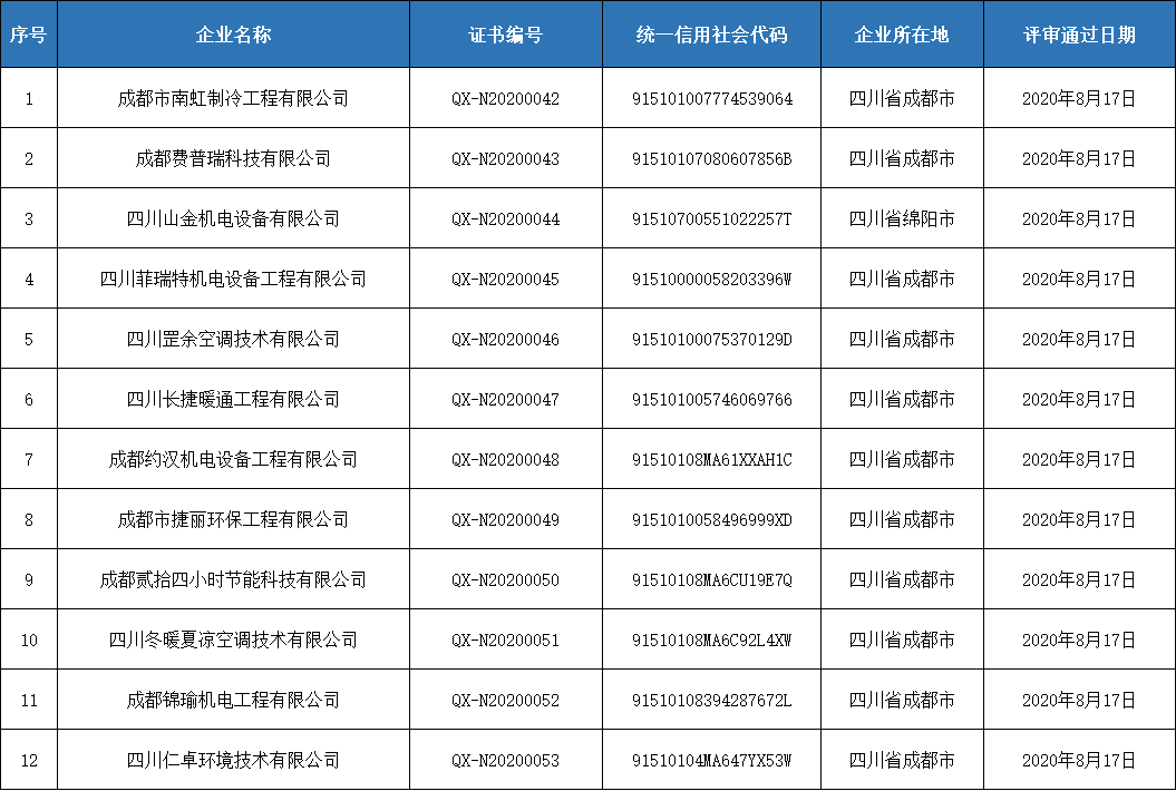 我會對第四批申請四川省空調(diào)通風(fēng)系統(tǒng)專業(yè)清洗企業(yè)資質(zhì)證書的申報材料組織了專家審查,現(xiàn)將符合專家審查意見的企業(yè)名單在四川省制冷學(xué)會門戶網(wǎng)站(http://www.ngwpxil.cn/)予以公示,以廣泛接受社會監(jiān)督。公示截止日期為2020年8月20日。